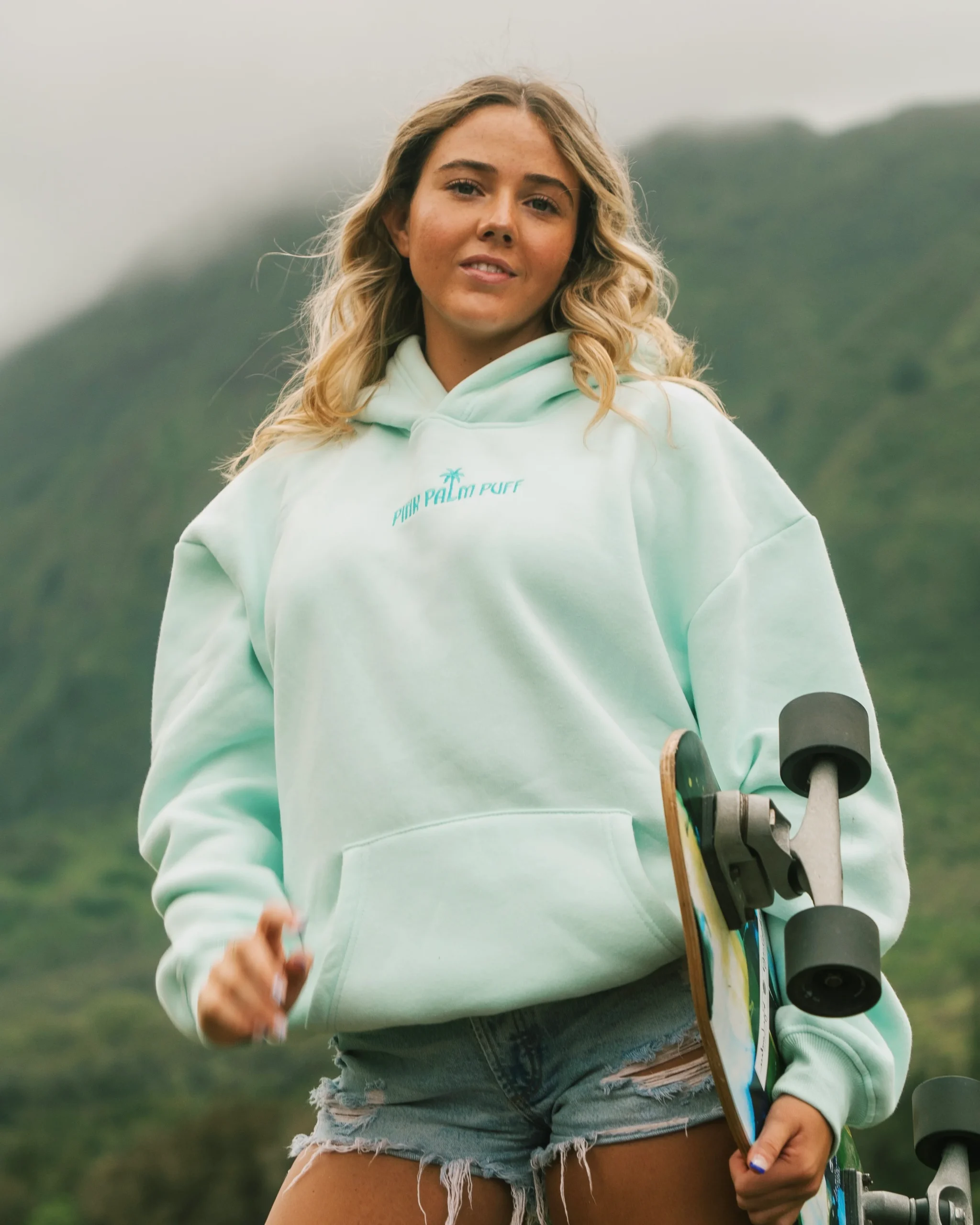 Pink Palm Puff Classic Hoodie in Breeze